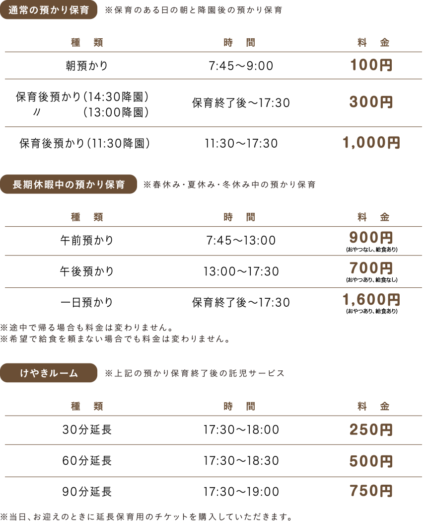 預かり保育専用施設「けやきルーム」についてはこちらをご覧ください。